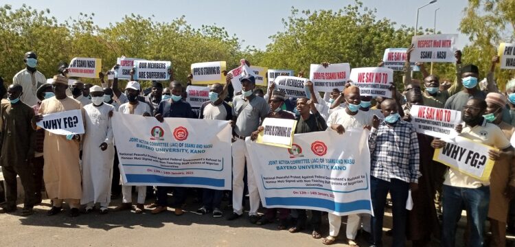 The Senior Staff Association of Nigerian Universities (SSANU) and the Non-Academic Staff Union of Educational and Associated Institutions (NASU) Joint Action Committee (JAC) embarked on a nationwide protest on Thursday in a bid to force the implementation of some of the aging agreements that they signed with the Federal Government.